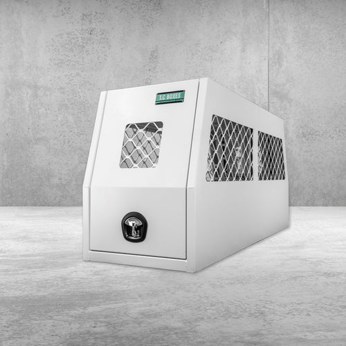 The TCX Full Dog Box 600mm in Black Powder Coat gives your dogs a safe, comfortable ride no matter where the road takes you. Built from 3mm flat-plate aluminium, it’s strong, reliable, and designed for both tradies and 4x4 adventures. Laser-cut vents keep fresh air flowing, while the open floor makes cleaning simple after a day in the dirt. The centre swinging door offers flexibility, with the option to secure it closed, latch it open, or remove it completely. Whale-tail locks with a 3-point locking system deliver the strength and security you need to keep your best mates safe. With a 200kg static roof load rating and a fit that suits most dual cab utes, this box is tough enough for work while offering peace of mind on weekend trips. Finished in sleek black powder coat, it looks sharp while standing up to the elements.