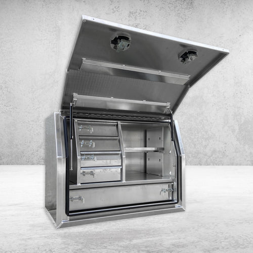 Yes, the TCX canopy can work alongside an aluminium toolbox for utes, especially when paired with products from the TCX range. The internal tower system allows you to configure your setup with drawers, shelves or toolboxes depending on how you use your ute.