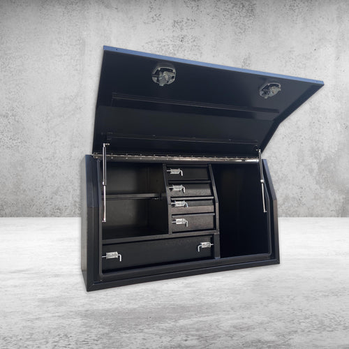 Yes, the TCX canopy can work alongside an aluminium toolbox for utes, especially when paired with products from the TCX range. The internal tower system allows you to configure your setup with drawers, shelves or toolboxes depending on how you use your ute.