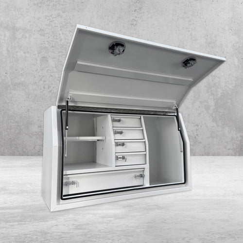 Yes, the TCX canopy can work alongside an aluminium toolbox for utes, especially when paired with products from the TCX range. The internal tower system allows you to configure your setup with drawers, shelves or toolboxes depending on how you use your ute.